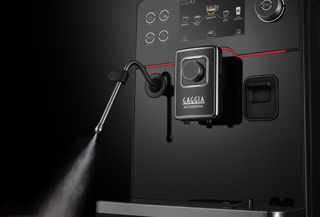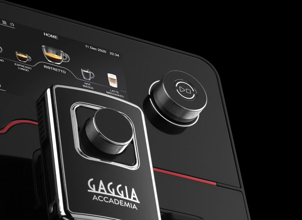 Елегантний, ефектний і надійний. На 100% розроблений і виготовлений в Італії, Gaggia Accademia має високоякісні матеріали, такі як нержавіюча сталь, метал Zama та чорне дзеркальне скло. Він збагачений преміальними деталями, такими як червона лінія з підсвічуванням або дорогоцінна текстура поворотних ручок, і має оптимальну площу.
